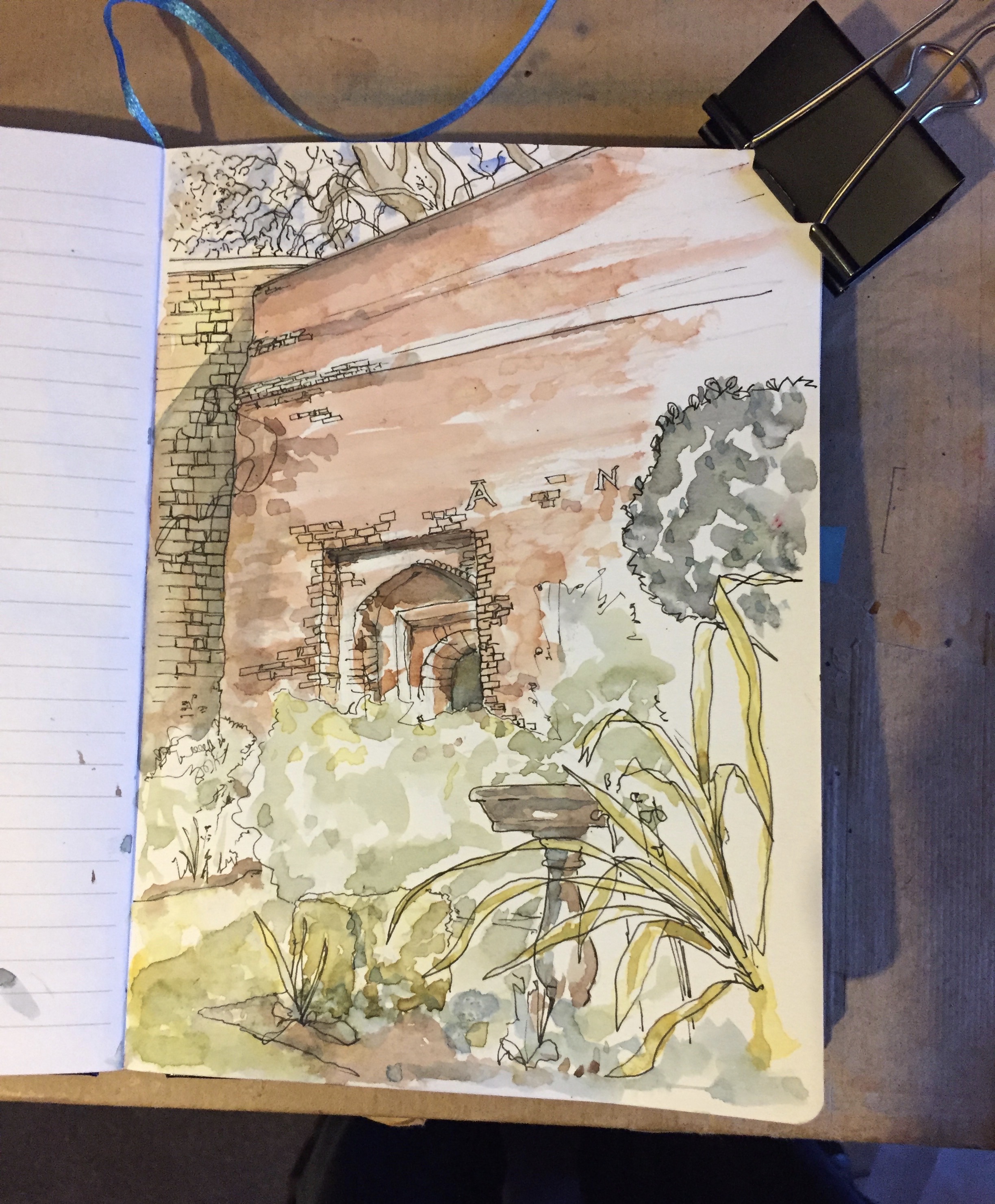The door is more like a tunnel in the thick brickwork. It has a grass path leading to it and looks functional. Nobody went in or out while I was drawing it.