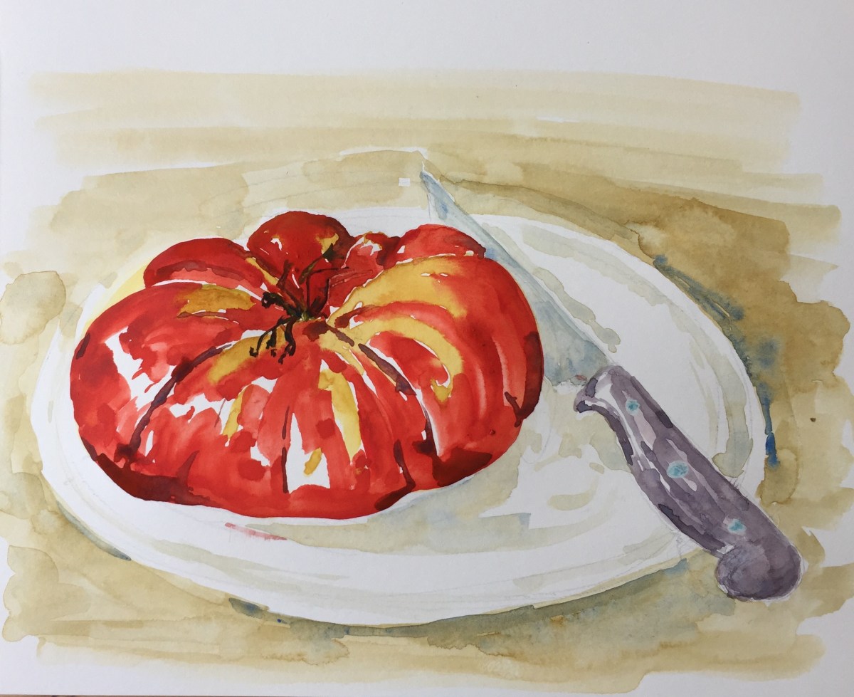 This tomato was a work of art in its own right. See how large it was. I can now report that it was perfectly ripe – and delicious!