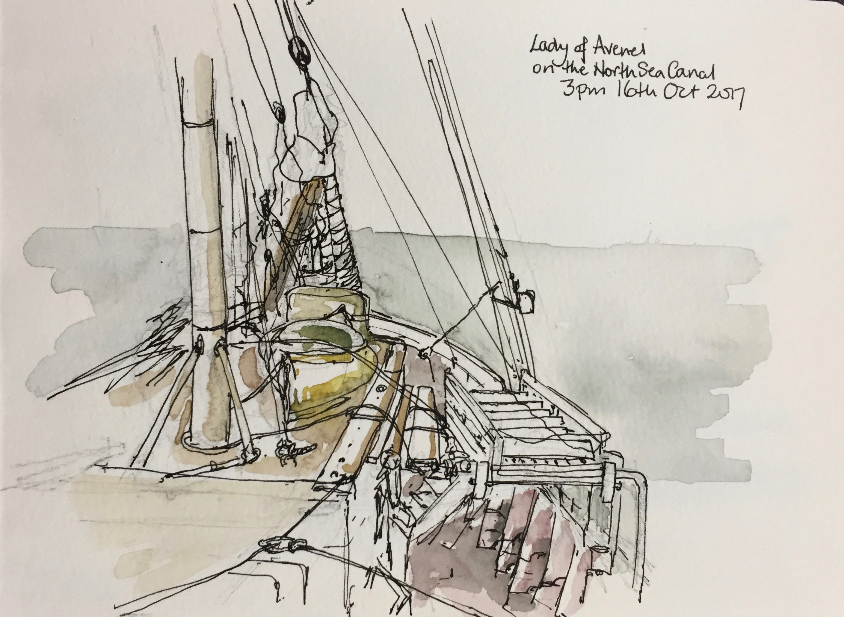 In the morning, we set off along the “North Sea Canal”. I drew a complicated picture of “Lady of Avenel” from the quarterdeck, which took a long time.