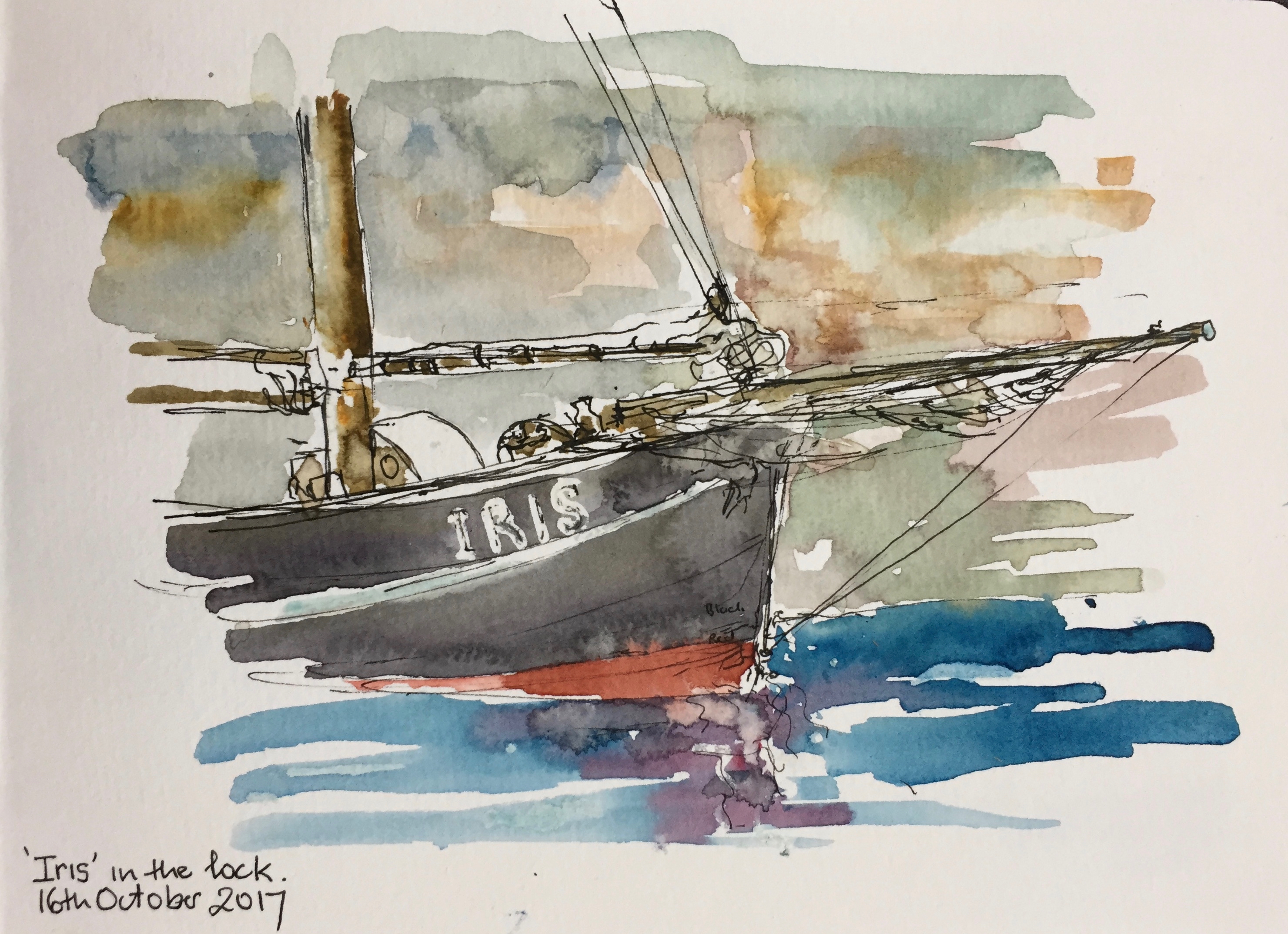 Then, in a lock, I drew a quick picture of “Iris” who followed us in. This was much more successful.