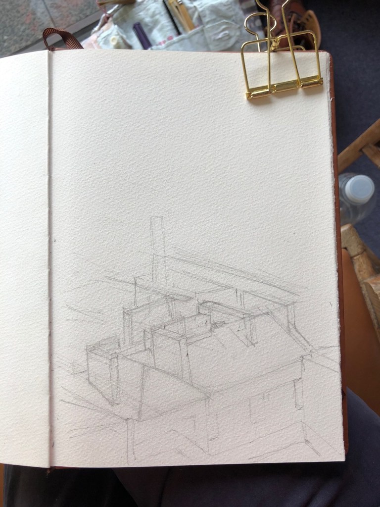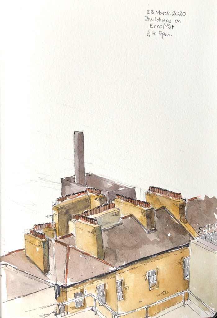 Sketching from home: here is a view of the chimney pots on the Peabody buildings of Errol St: