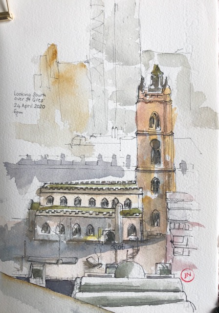 I drew St Giles’ Cripplegate, as seen from the window of the flat.