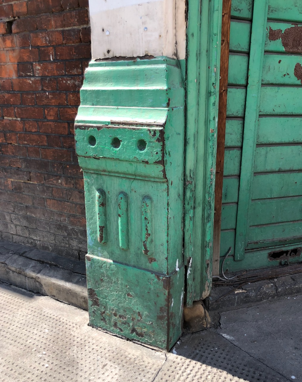 So here is Denton Bros , on the corner of West Poultry Avenue and West Smithfield. I like this building. The green objects at the base of the doorposts are made of iron. I think they must be to protect the brickwork from being bashed by market trolleys. The windows are well made and ornate. The lower panes are wood, which must have been for some specific purpose. I wonder if it is so the supervisors can open a wooden door and lean out to examine proceedings below. Or perhaps it was to stop lowly clerks on the first floor from wasting time looking out of the window.