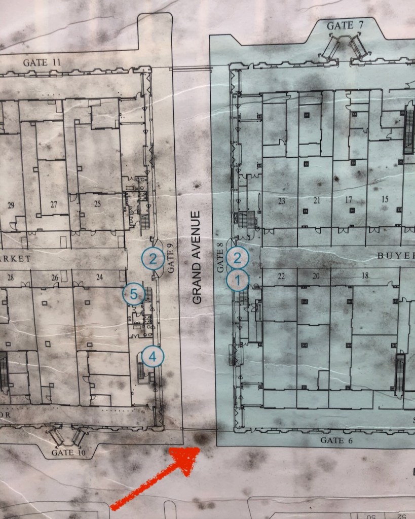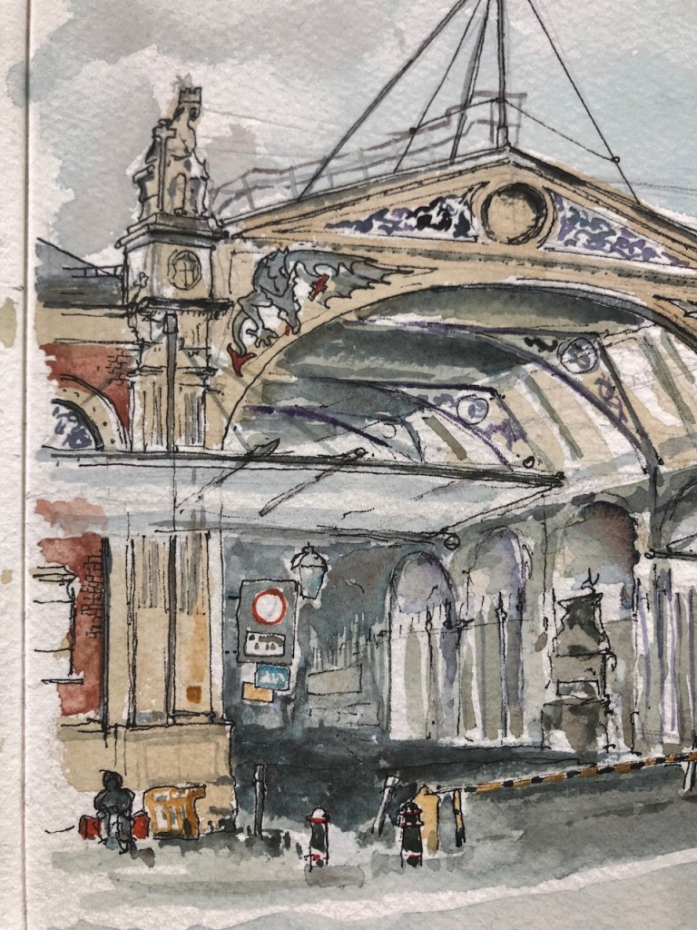It’s the entrance to the working meat market, sketched in the afternoon when there is little market activity. The trading takes place 2am to 7am.