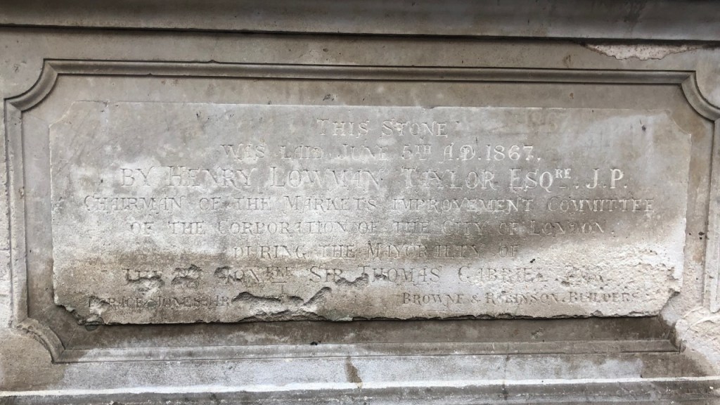 The West and East Market was designed by Horace Jones, and built by Browne and Robinson, as the carved stones proudly declare. The East Market was refurbished in 1997.