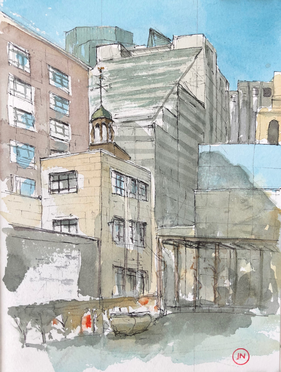 On the right of my drawing is a part of the cubical building mentioned in my previous post.