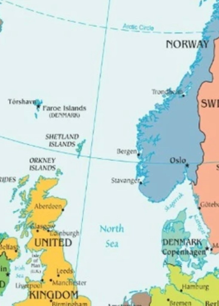 Here are some maps to show the location. I have also included maps showing where Shetland is, since people have asked. It is about 100 miles off the north coast of Scotland. From Aberdeen it is some 250 miles (400km) and takes 13 hours by ferry. Shetland is at a more Northerly latitude than Oslo and Stavanger, nearer Bergen than Aberdeen and nearer Copenhagen (590 miles) than London (600 miles).