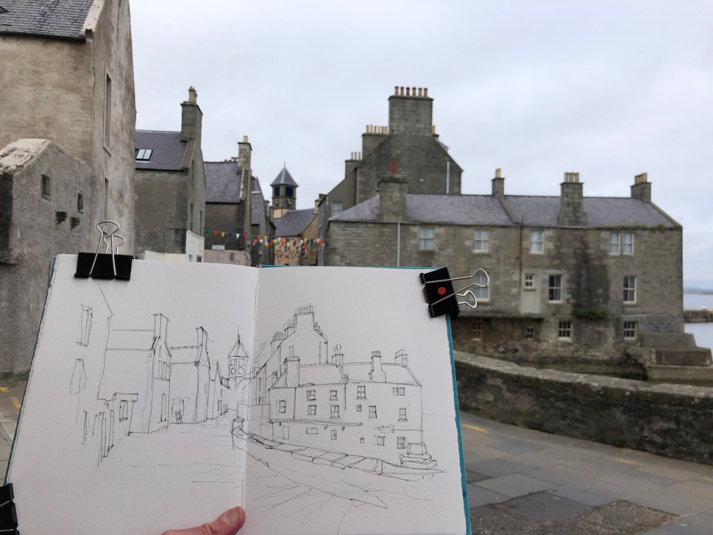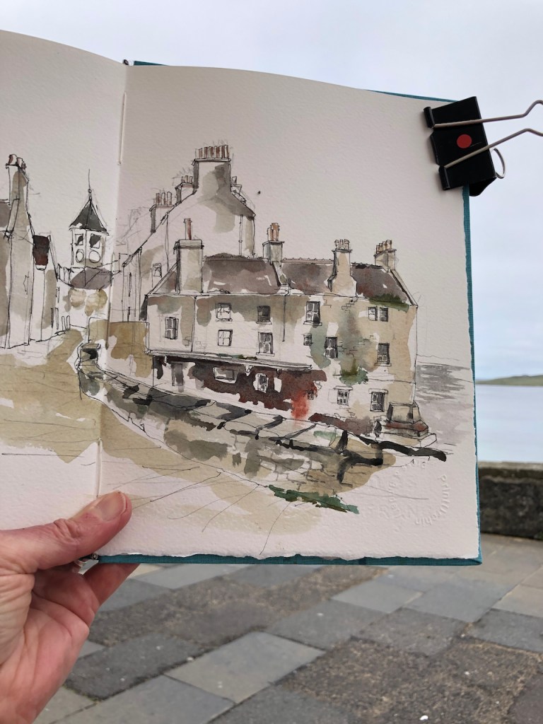 Here is a view of houses in Lerwick known as “lodberries”. They are built into the sea. Lerwick is one of the few capital cities in the world that has a beach. The other I know is Sydney Australia. The beach in Lerwick is somewhat smaller than Bondi beach, and is over the wall to the right of my picture.