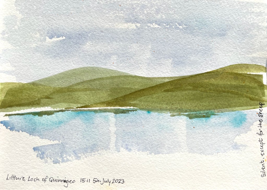 There are also seals on the beach where a stream from the Loch of Quinnigeo arrives at the sea. Nettles grow, sheltered from the wind by the deep ravine, and watered by the freshwater stream. I’ve swum there, and sketched the cliffs.