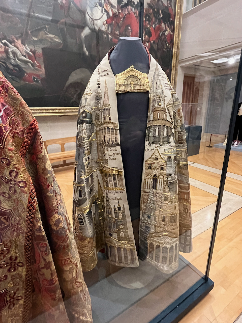The Silver Jubilee Cope and Mitre is a set of an embroidered and appliquéd cope and mitre made to celebrate the Silver Jubilee of Queen Elizabeth II of England (r: 1952-) in 1977. They were designed by British embroiderer Beryl Dean and made by needlework students of the Stanhope Institute, London.https://trc-leiden.nl/trc-needles/individual-textiles-and-textile-types/commemorative-and-commissioned-textiles/silver-jubilee-cope-and-mitre