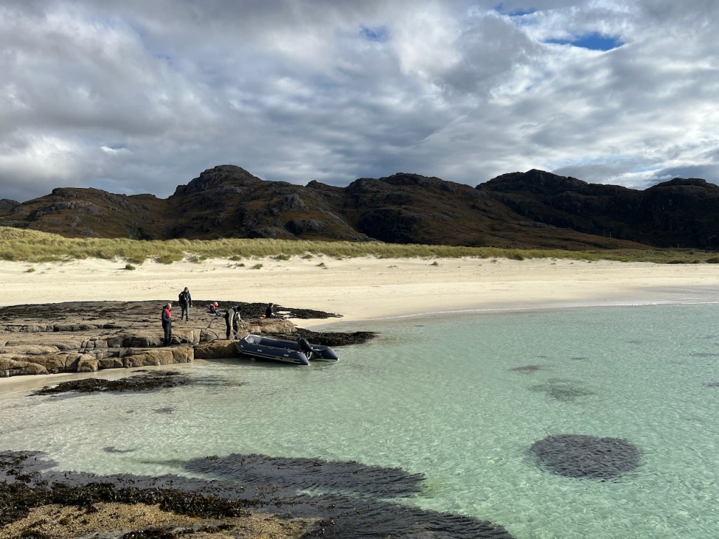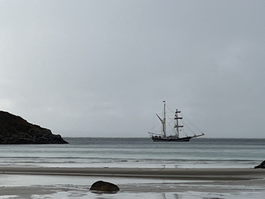 Here’s a photo, showing the Lady of Avenel at the anchorage at Tràigh Gheal. We reached the beach by rubber dinghy.
