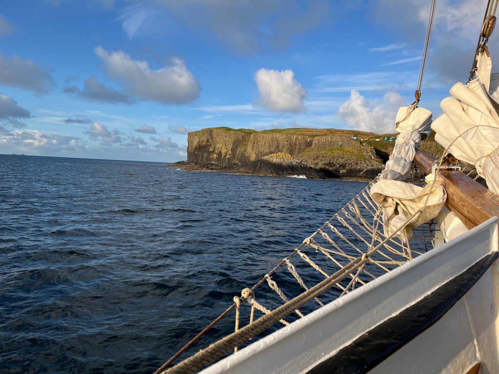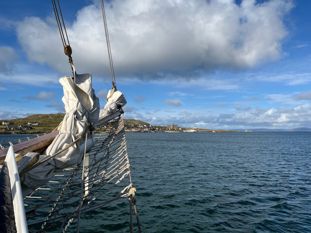 With a strong wind in our sails we reached 8 knots on the journey south from Eigg to Iona.