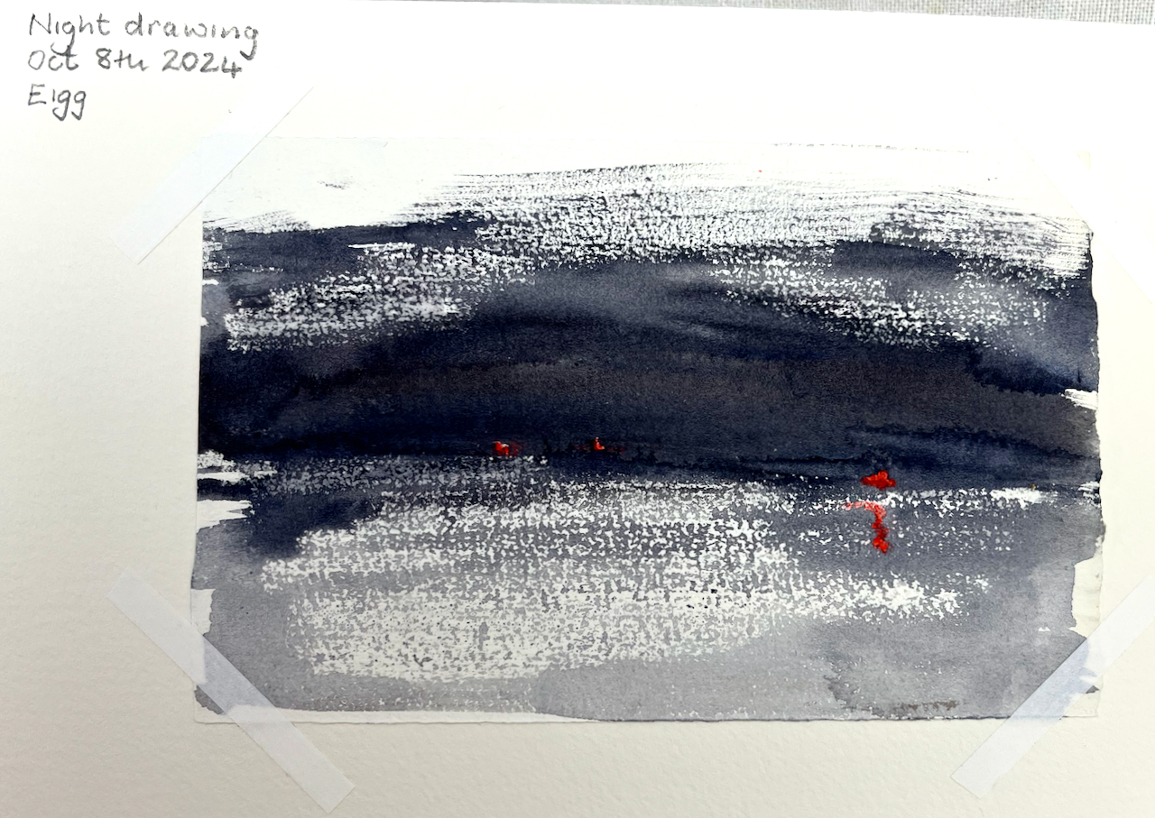 In case you are curious, here are night sketches. The lights are done using wax crayon.