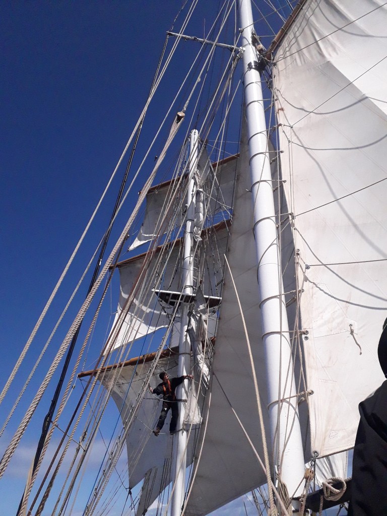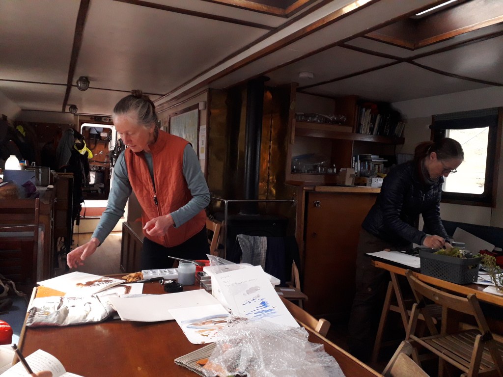 We travelled over 100 miles, much of it under sail. Fellow artist Alice Angus and I delivered sketching workshops to a companionable group of participants, and everyone made lots of sketches. Some people also steered the boat, managed the sails, swam on the sandy beaches, and a few brave participants went up the mast.