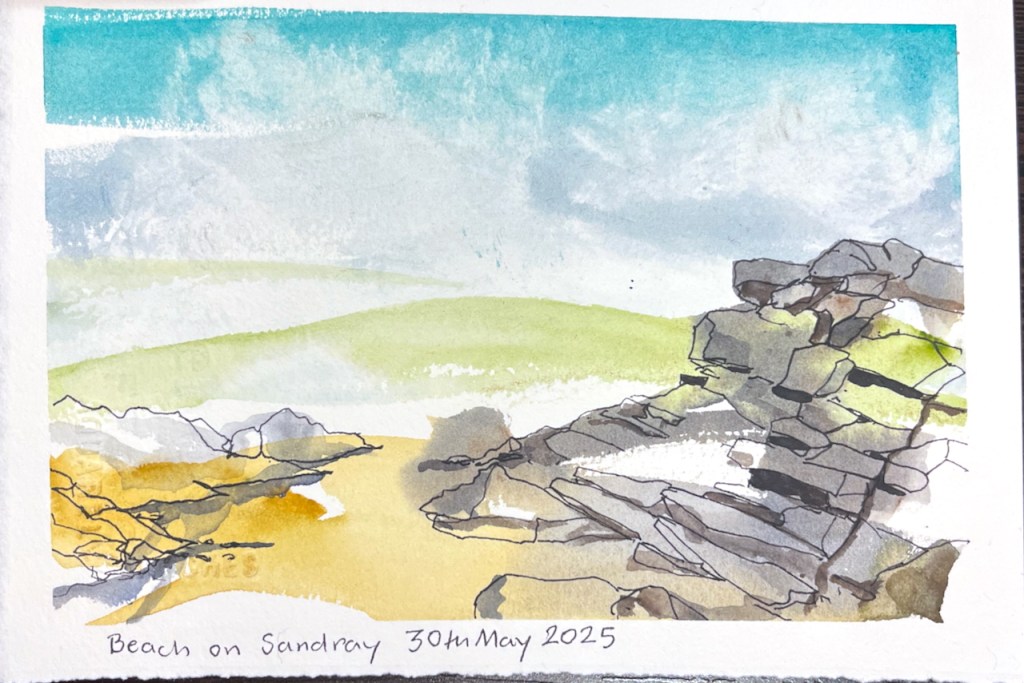 The beach at Sandray was a great sketching location. Here is a photo of my sketching spot.