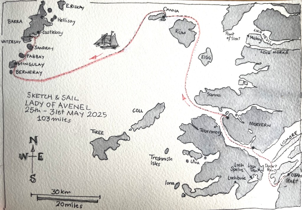 I’m thrilled to be one of the tutors on the Lady of Avenel “Sketch and Sail” adventure. I have just returned from the May 2025 voyage in the Scottish western isles.