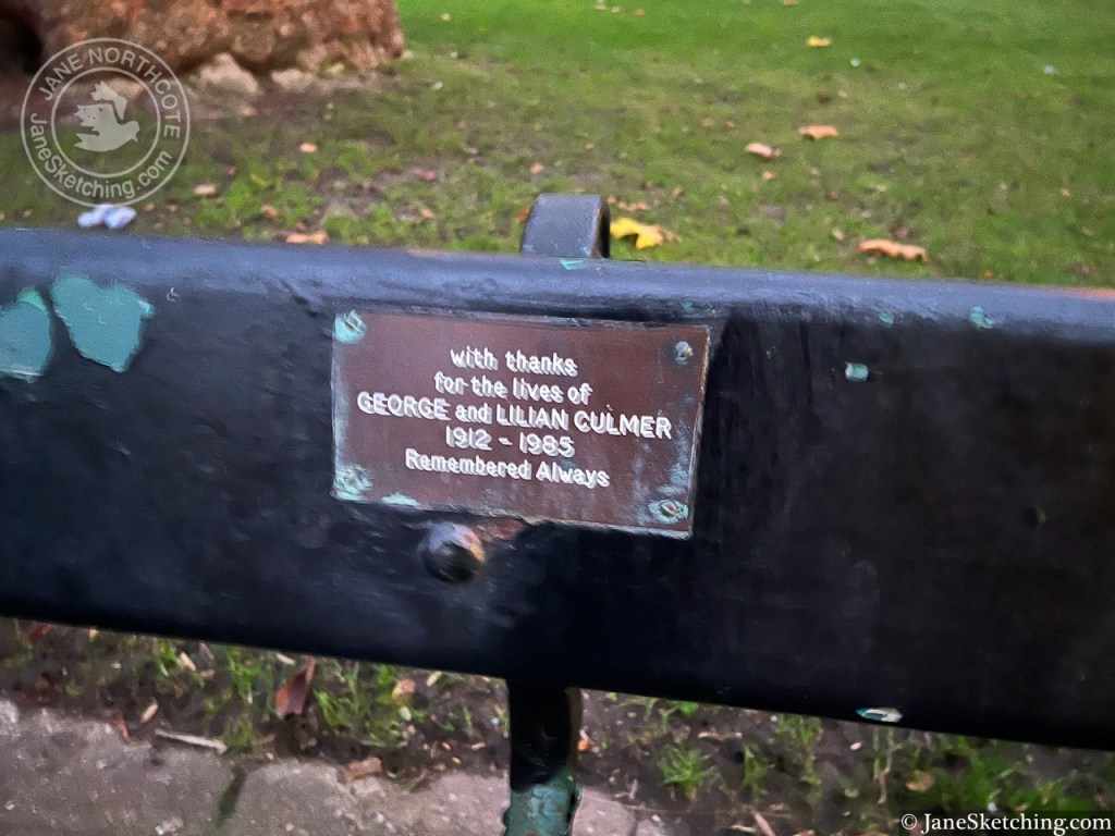 The bench commemorated the lives of George and Lilian Culmar, 1912 -1985.