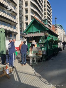 I sketched this one on the first sunny day in spring. I’d arrived there at around 1:30pm. There was a long line of people outside and several tables. While I was doing the sketch, the manager closed the window and the queue dissipated. Then she came out and packed up all the tables. I just managed to sketch one table before they all disappeared. This shelter closes at 2pm.
