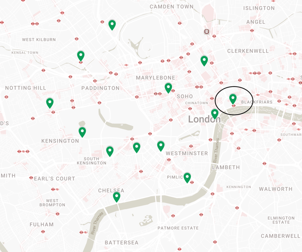 Here’s a map showing the location of the shelter. As you see, it is near Temple Station, which accounts for the flux of people passing.