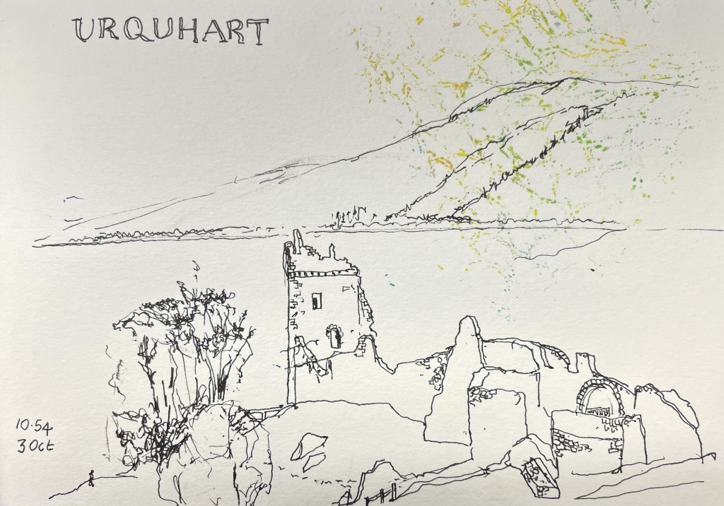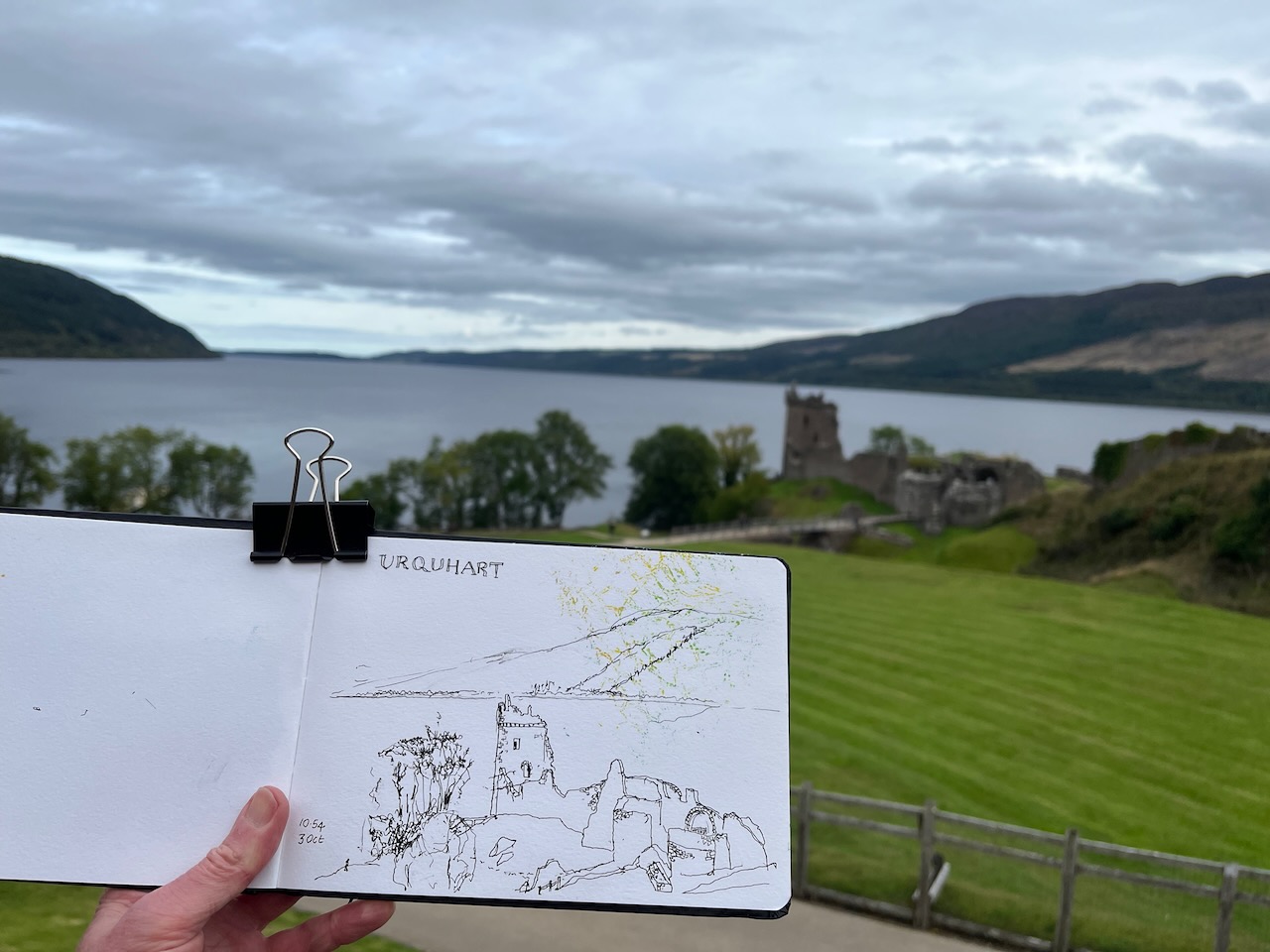 From the Community Arts Centre, An Tobar, in Tobermory Tobermory, from the Lady of AvenelUrquhart CastleSketching at Urquhart CastleSketching on shore leave