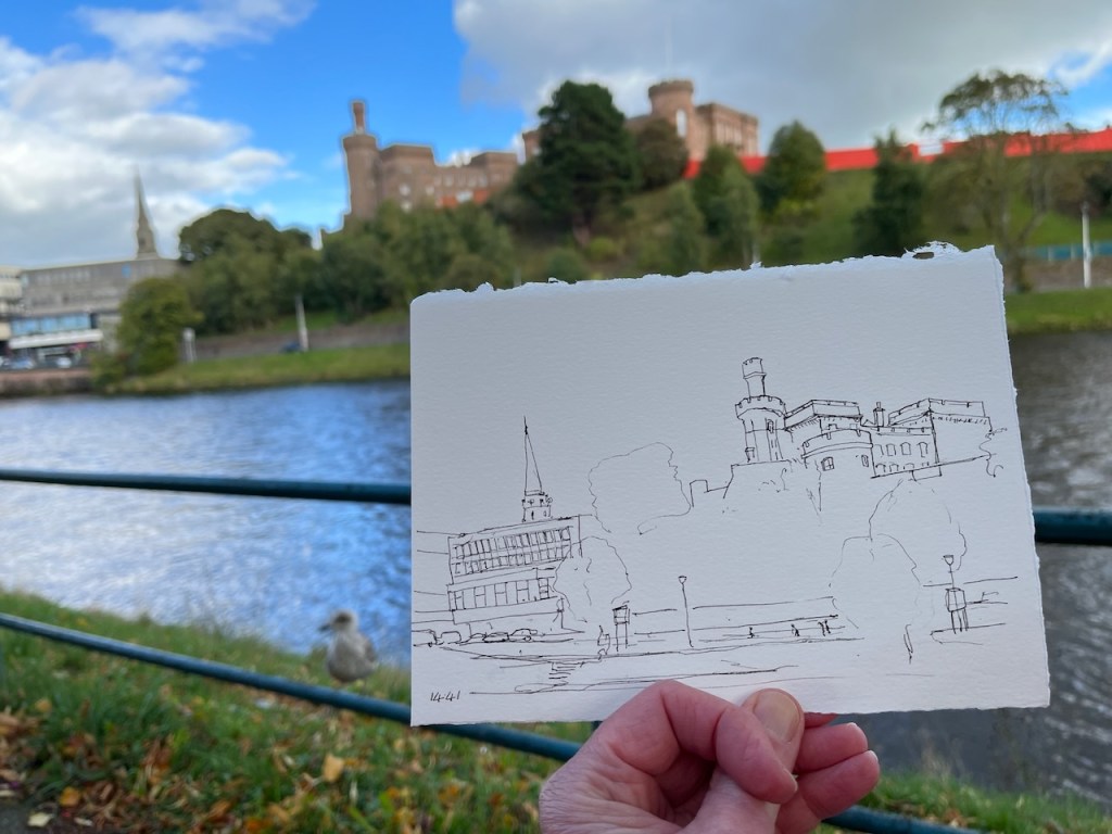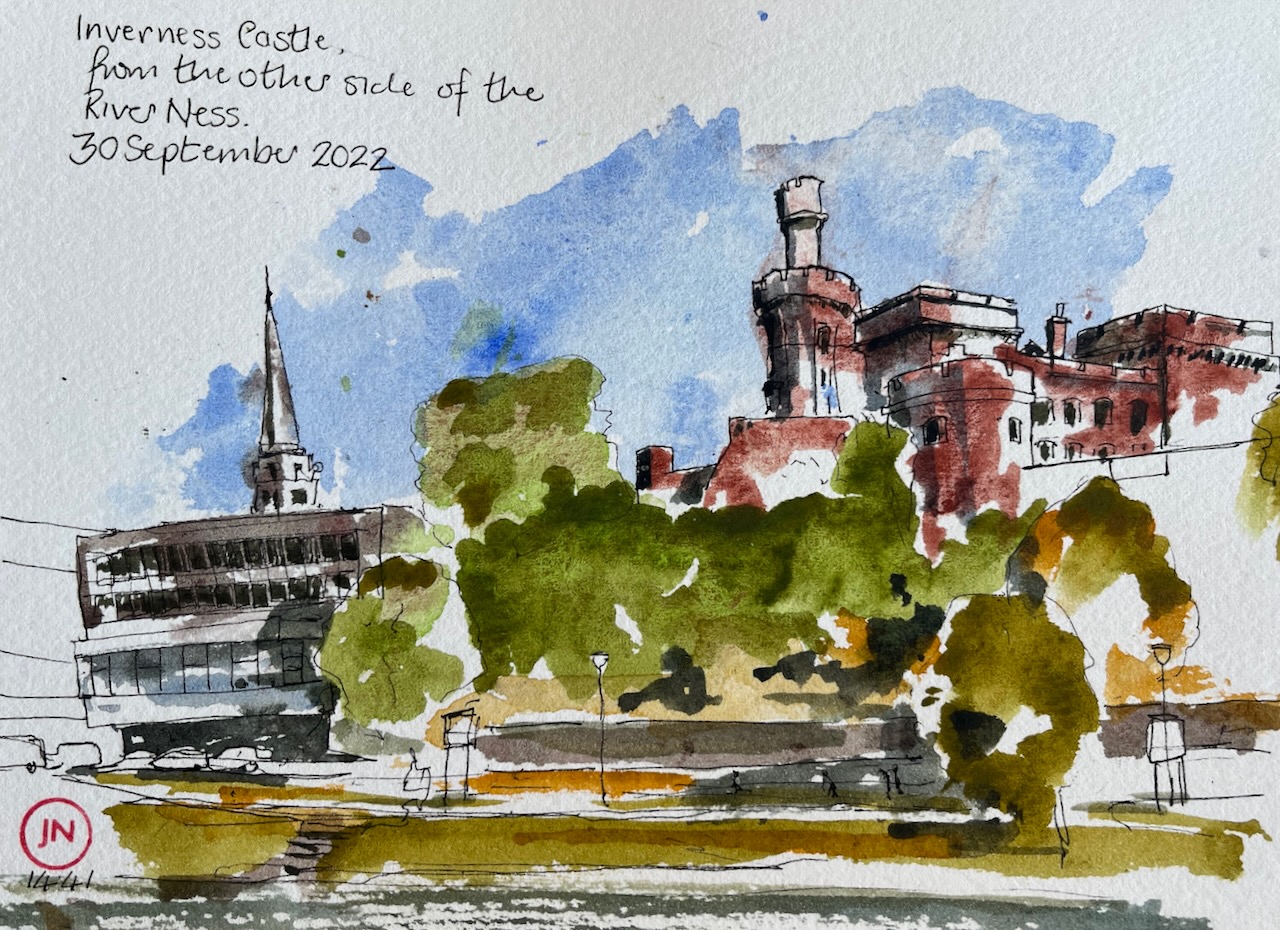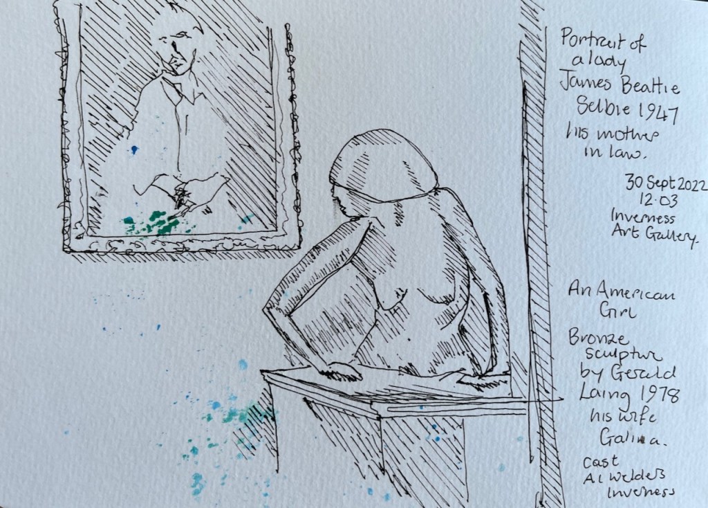 In the Art Gallery, Bronze Sculpture by Gerald Laing 1978 “An American Girl” – his wife Galina.View from my room in Fraser HouseInverness Castle From the other side of the river. Sketching inverness CastleSketching in Inverness