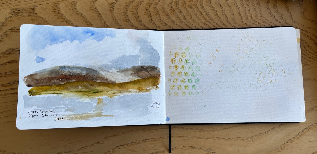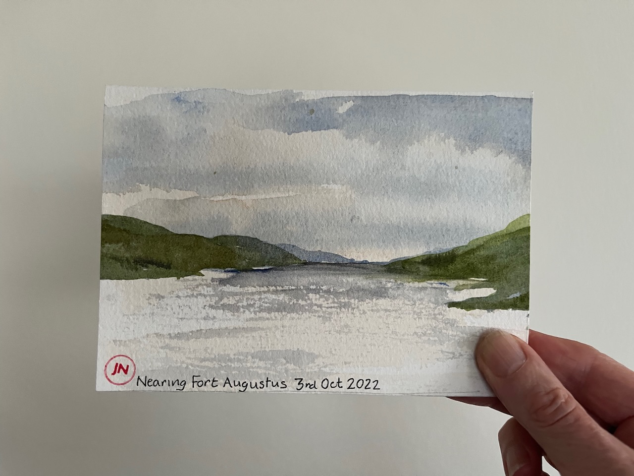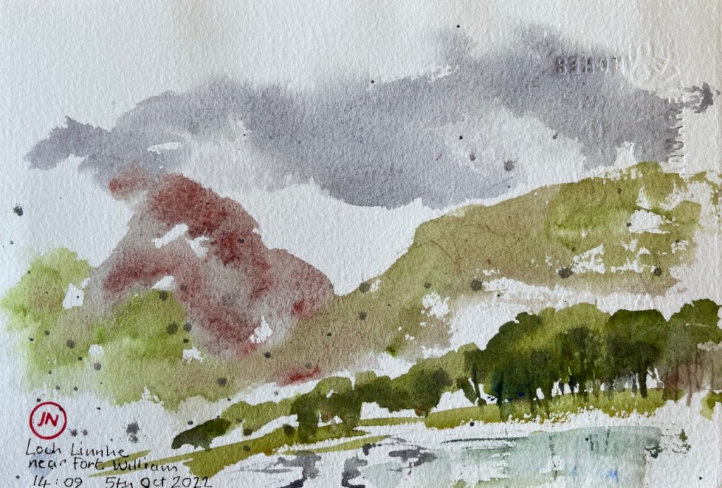 The scenery of the Highlands, seen from the boat, was stunning. I tried to capture the light. All these sketches were made from the boat, which was moving, even when anchored.