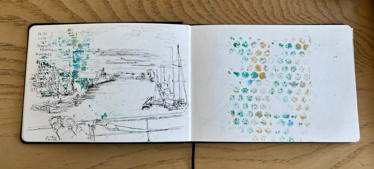 The sketchbook I was using was a Seawhite A5 Travel journal.
