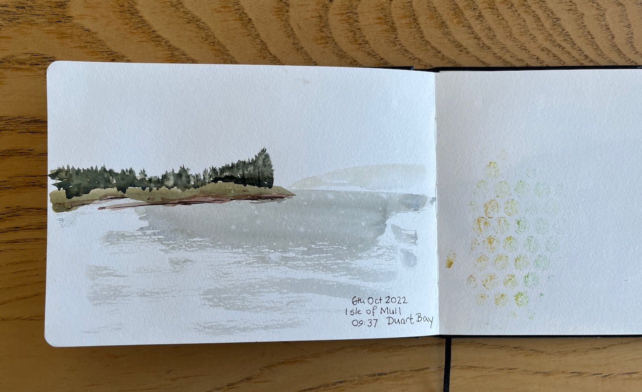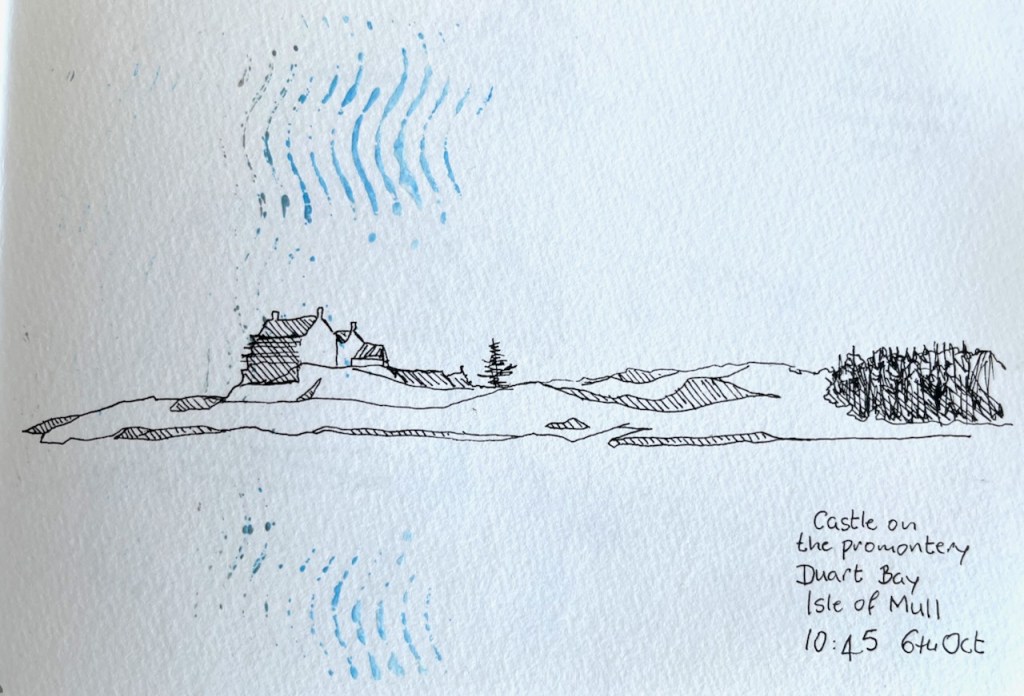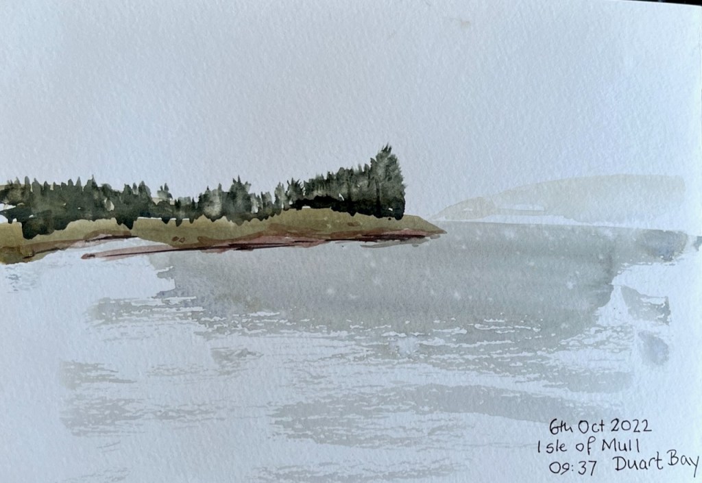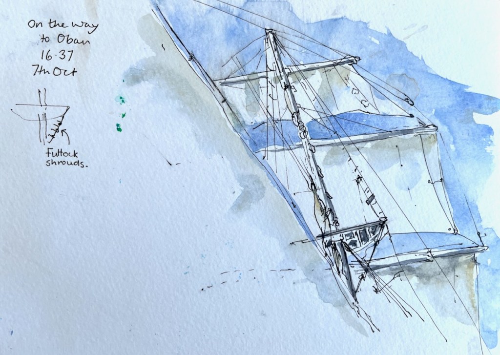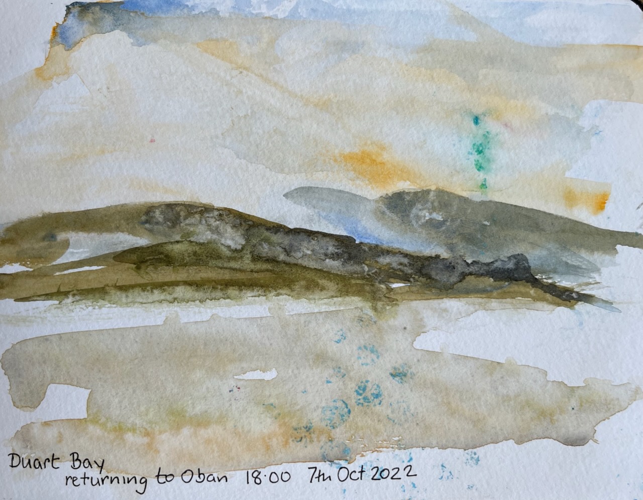 Leaving Oban, 6th October 2024. There was fine rain, some of which landed on the picture.Sketch map