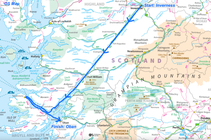 Route of The Lady of Avenel: Inverness to Oban, via Tobermory. 1st Oct to 8th Oct 2022