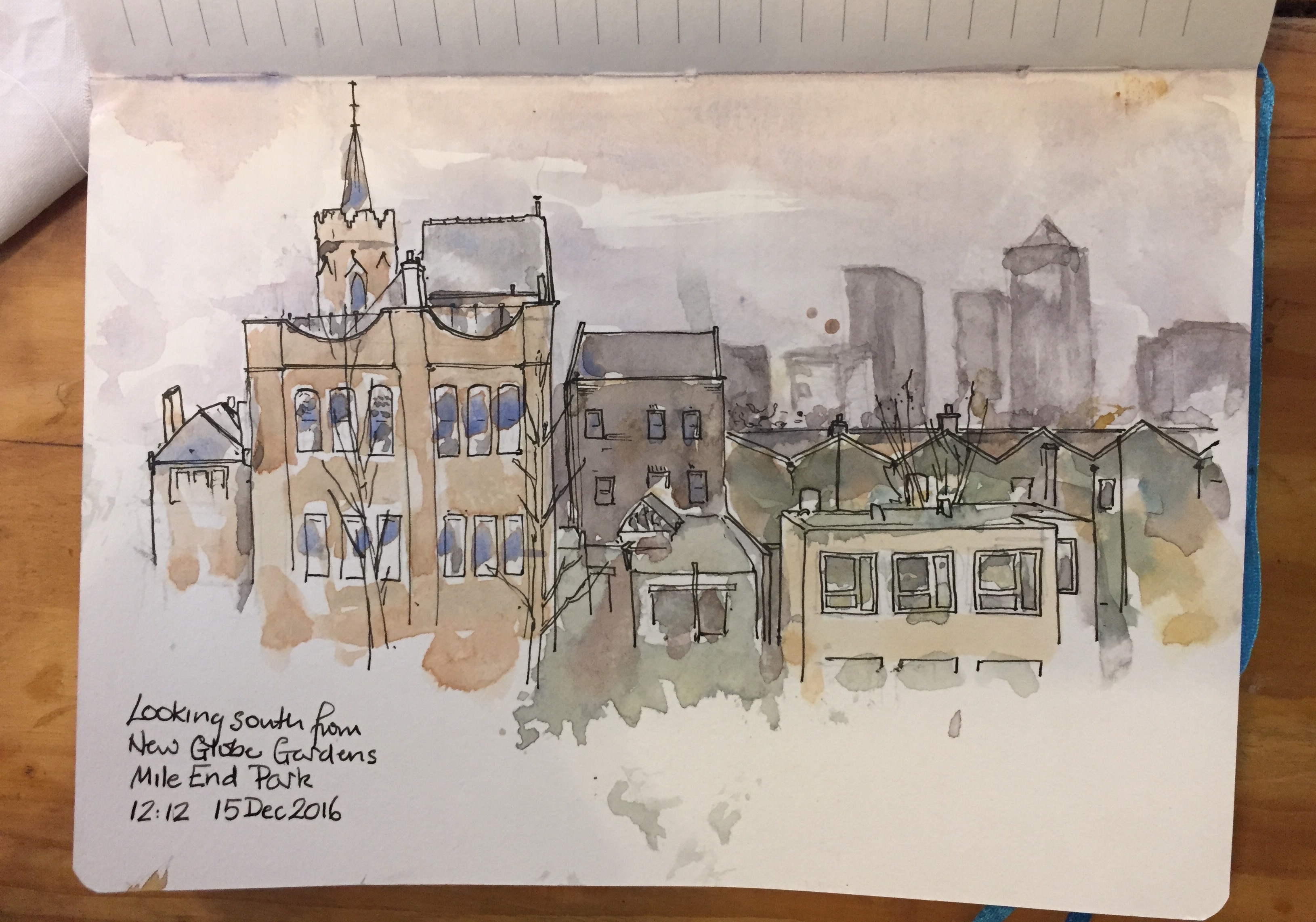 A vista of Islington development, drawn from a bench in St Luke’s Gardens.