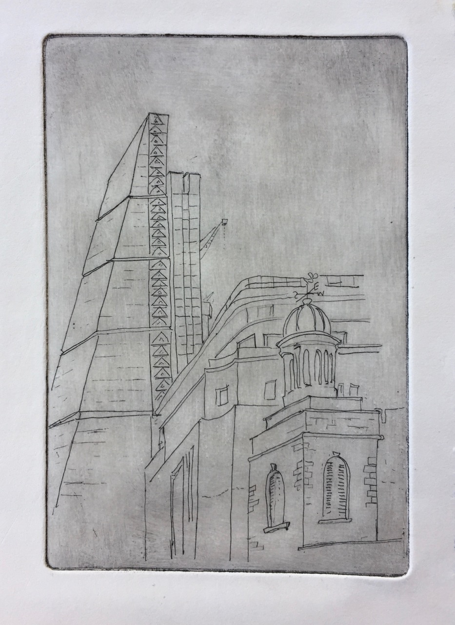 The long process of making the plates took all morning. I watched the rain fall into the canal. Perhaps some of this atmosphere went into the print. Making a two-colour print means: