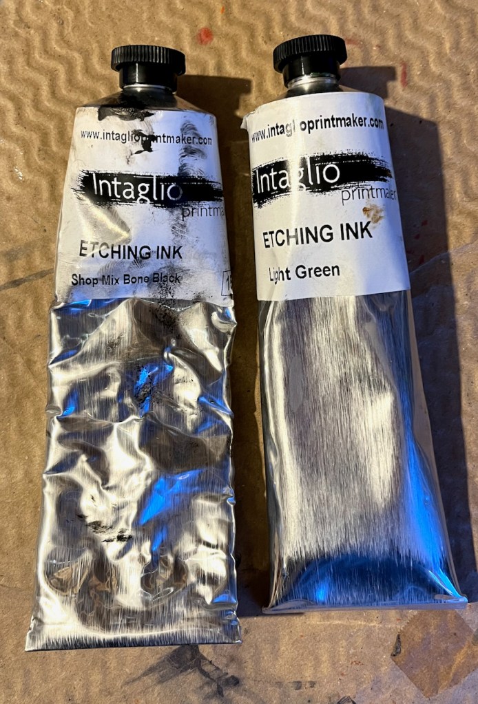 I made all the prints on the Henderson press at East London Printmakers, Stepney. I used Chabonnel F66 traditional oil-based etching ink.