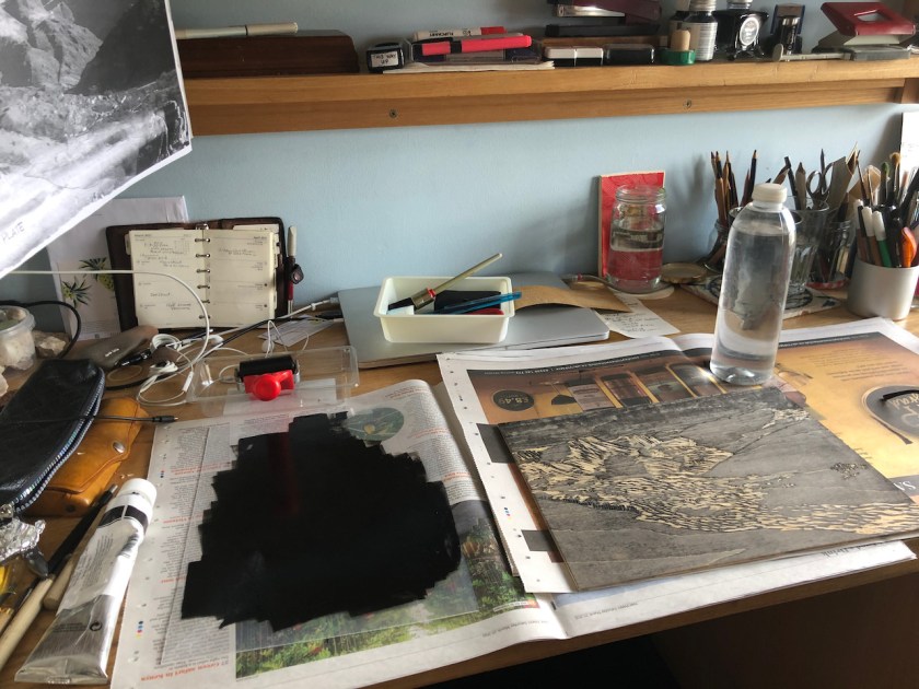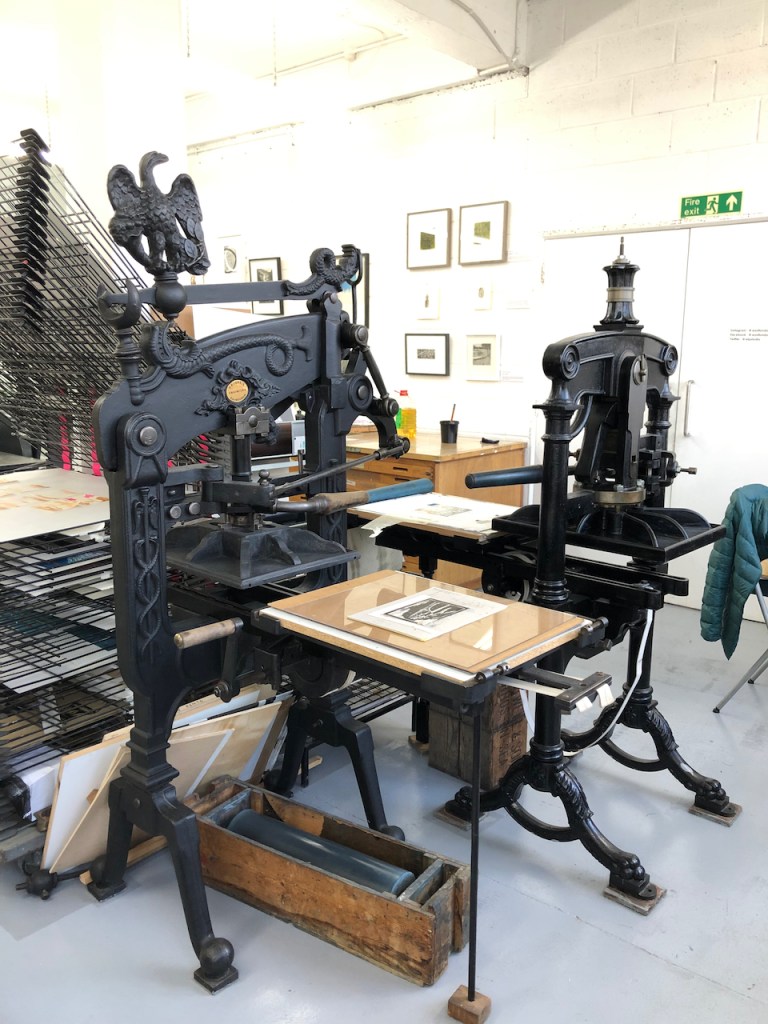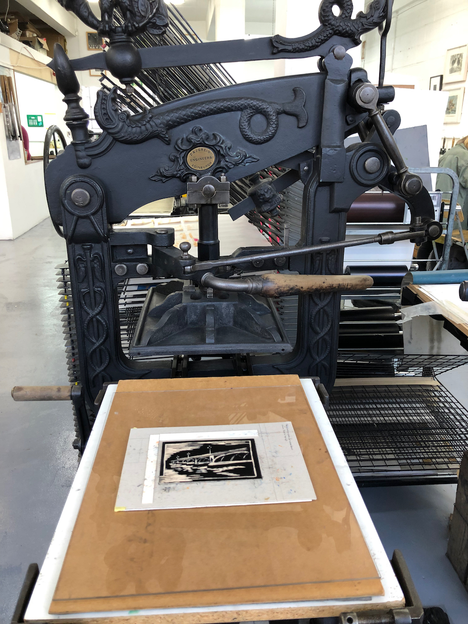 In the background you see the Albion press I used for printing. It is a wonderful cast-iron machine.