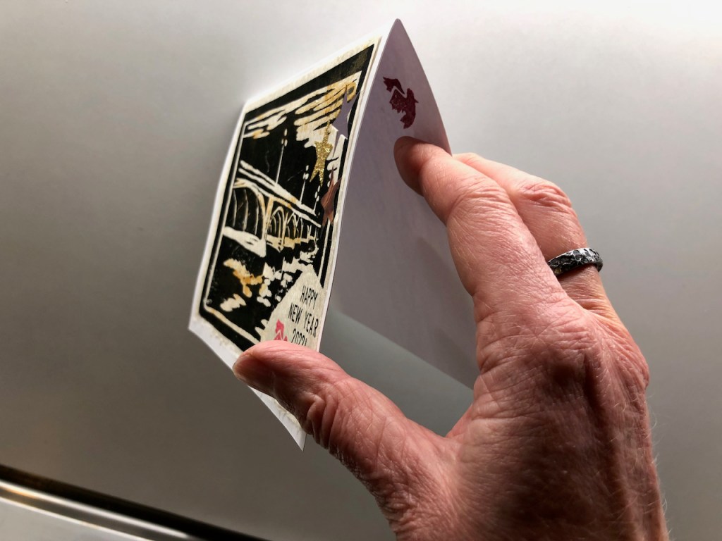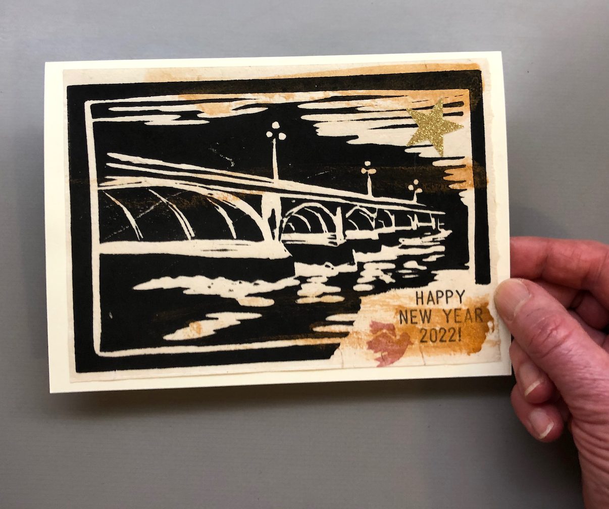 read more about thisHappy New Year! I made a woodcut. This is a greetings card, about 7″x5″.…