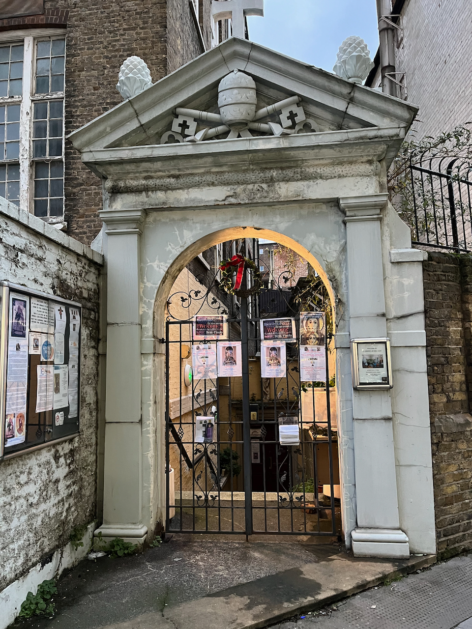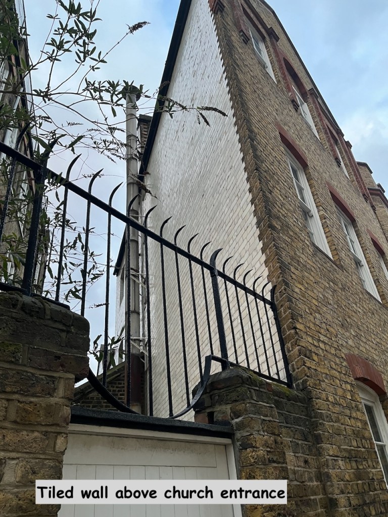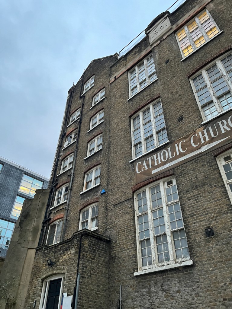 Number 15 Lamb’s Buildings hosts several organisations now. The City Photographic Society uses the Church Hall in this building. It is also the registered office of the Catholic Herald. I have often heard music as I pass by, so it might also be used as a rehearsal space. There is ballroom dancing on Mondays. The smaller building to the south, on the left of my drawing, hosts a pregnancy advice centre. So this is a set of buildings is in use, actively serving the community despite the flaking paint.