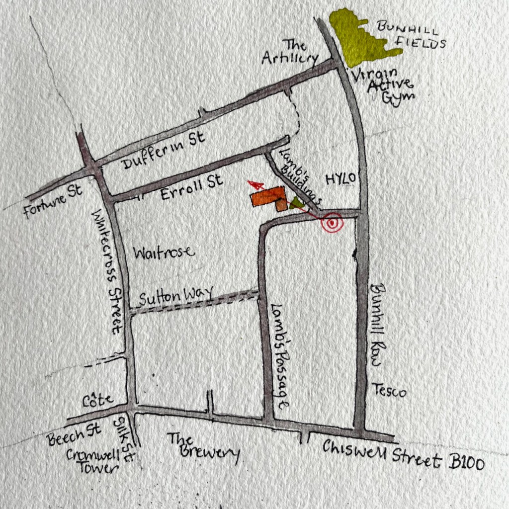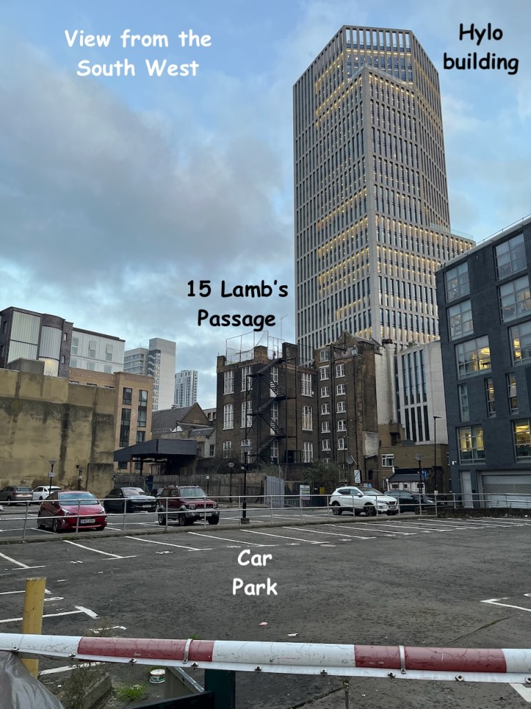 15 Lamb’s Passage, London EC1, sketched 5th January 2024 in Sketchbook 14, 4pm, 6 degrees C