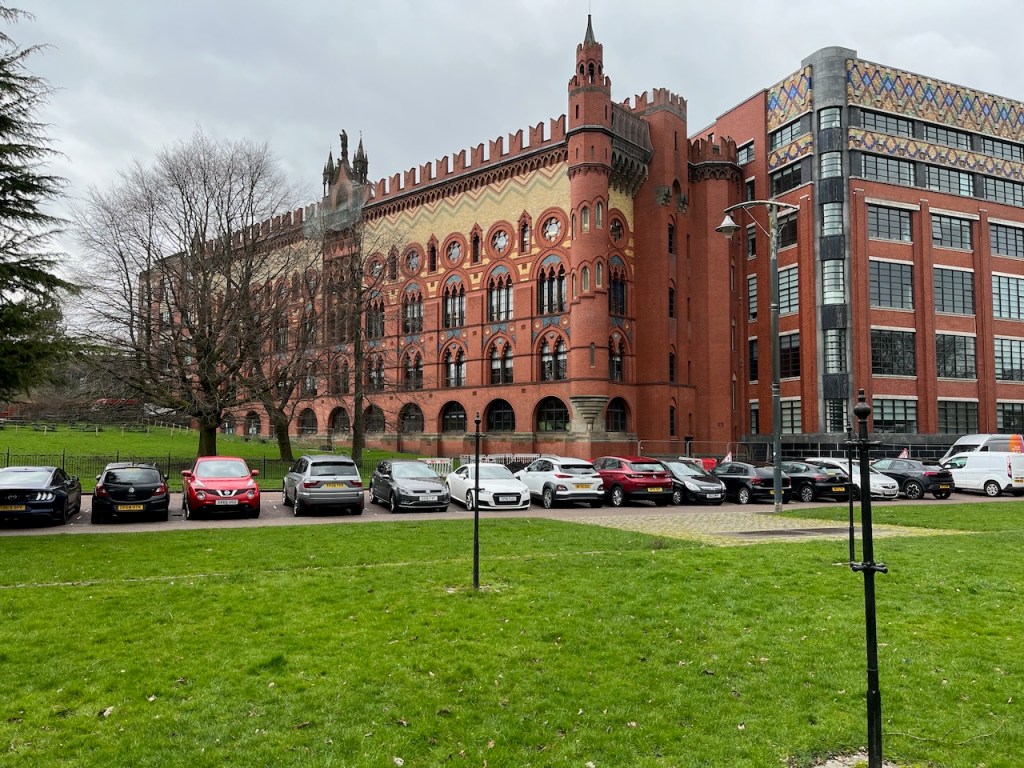 An old brick building stands amongst the new-build. The paint on its window frames is flaking, and its brickwork is dark from the smoke of a previous age, yet it retains its dignity: a grandmother of a building.