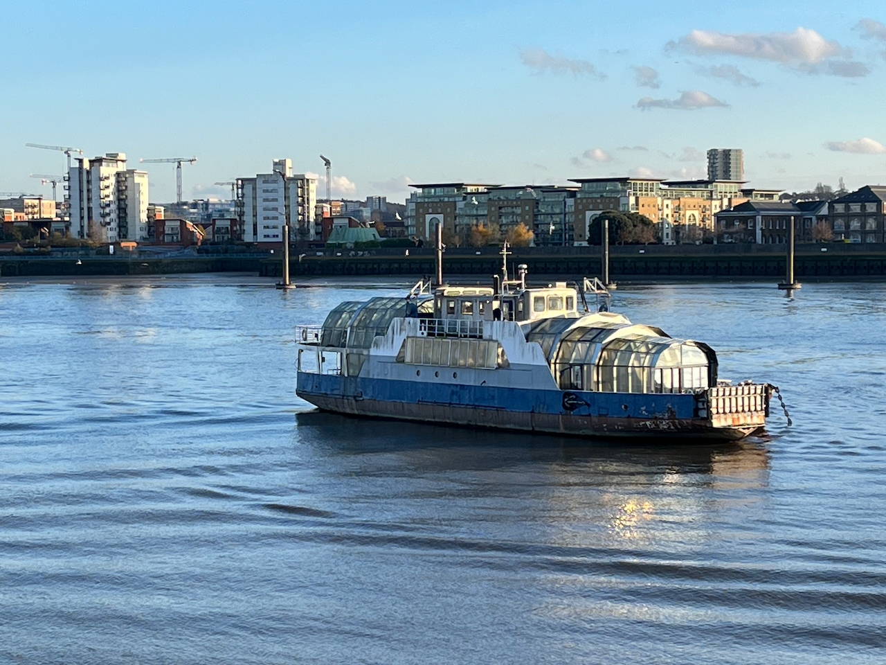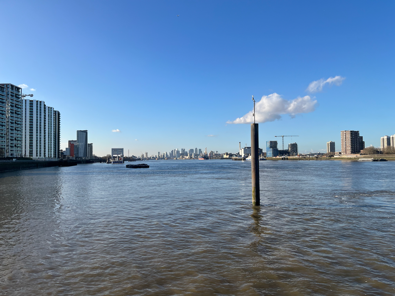 Everyone gets out at Greenwich, but it’s well worth going a bit further. The boat is empty, the Thames is huge, and the sky opens out.