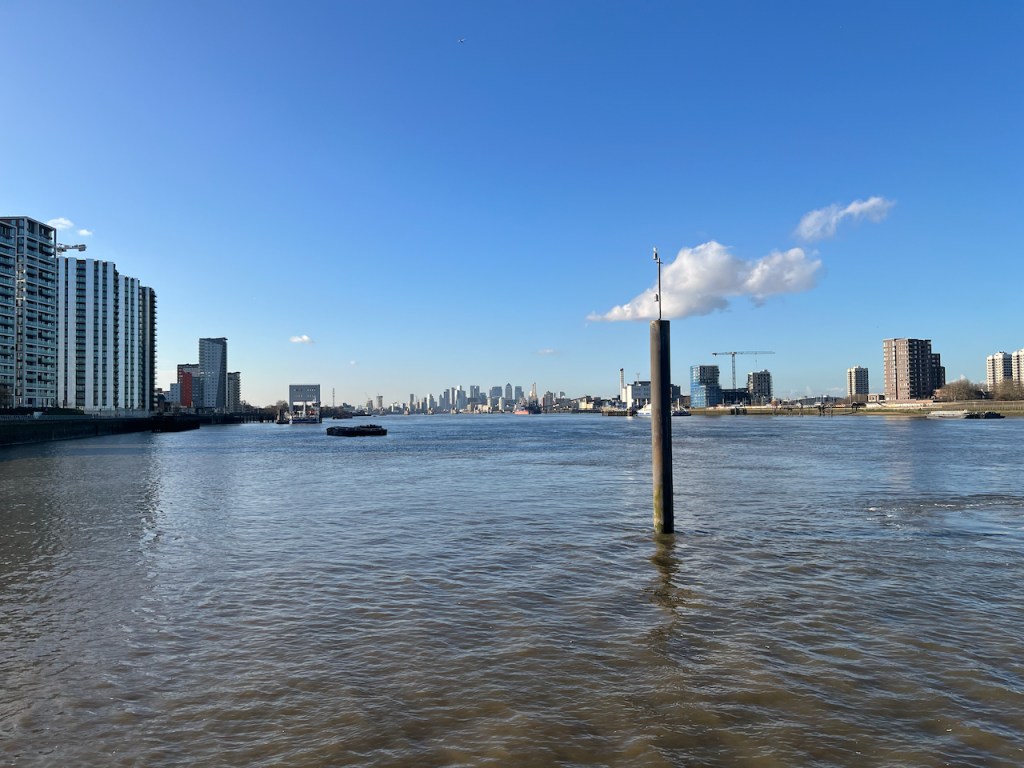 The City of London seen in the distance, from the Woolwich Royal Arsenal Pier