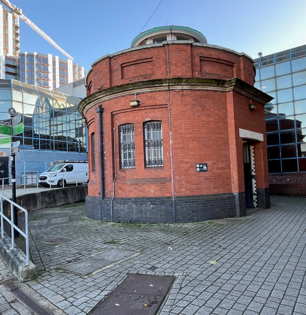 This circular building is one of four shafts giving access to the tunnel. It contains a spiral staircase, which was in use from when the tunnel was opened in 1908 until the 1970s2. This access is now closed to the public. The shaft building and the staircase are Grade II listed3.
