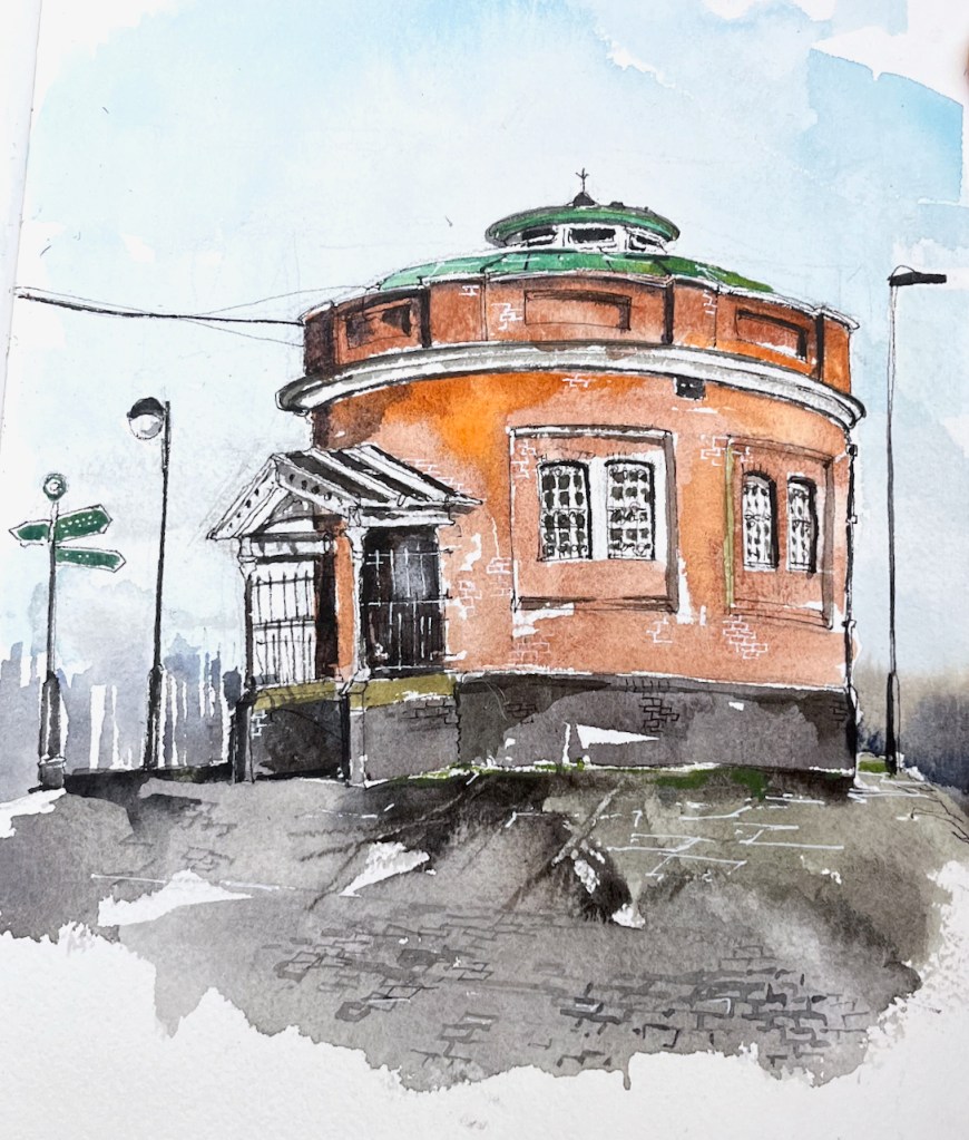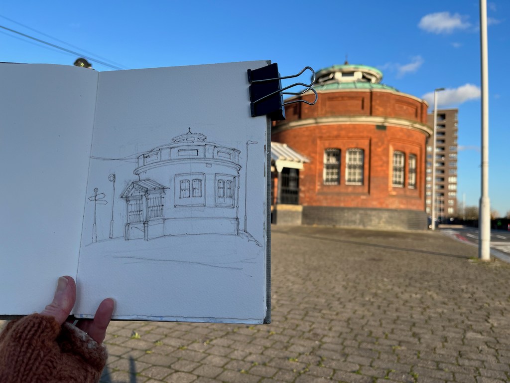 Rotherhithe Tunnel Shaft 2, sketched 4 November 2025 in Sketchbook 16 (c) JaneSketching
