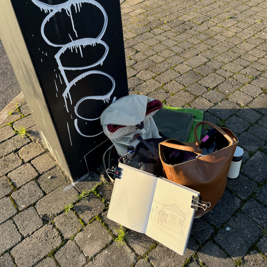 Pen doneDamp mossy wall…my sketchbook…coffee