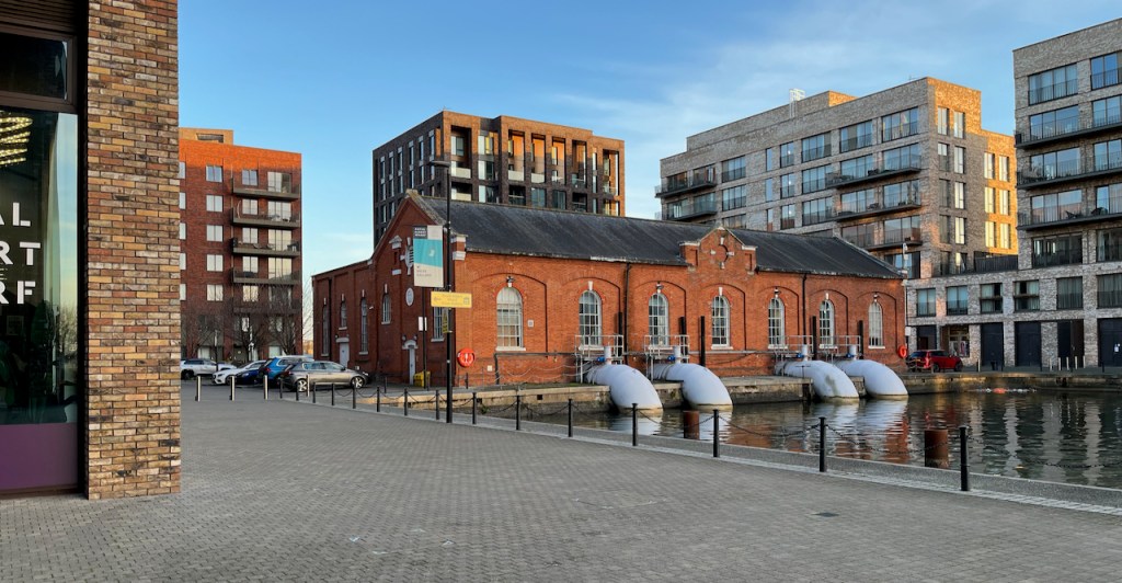 This is a monumentally large building, a last remaining representative of heavy industry, in an area now mainly residential. All around are the new tower blocks containing luxury apartments, made of shapes and designs aiming for visual appeal. Chronicle Tower and Canaletto Tower are just off the picture to the right. The sub-station is robustly functional. I enjoyed its forthright no-nonsense appearance.