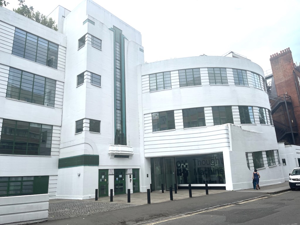 It was originally used as the headquarters of Daimler Hire Cars. It includes a spiral ramp, off to the right of my picture. This was where the cars entered and drove up to the garage.