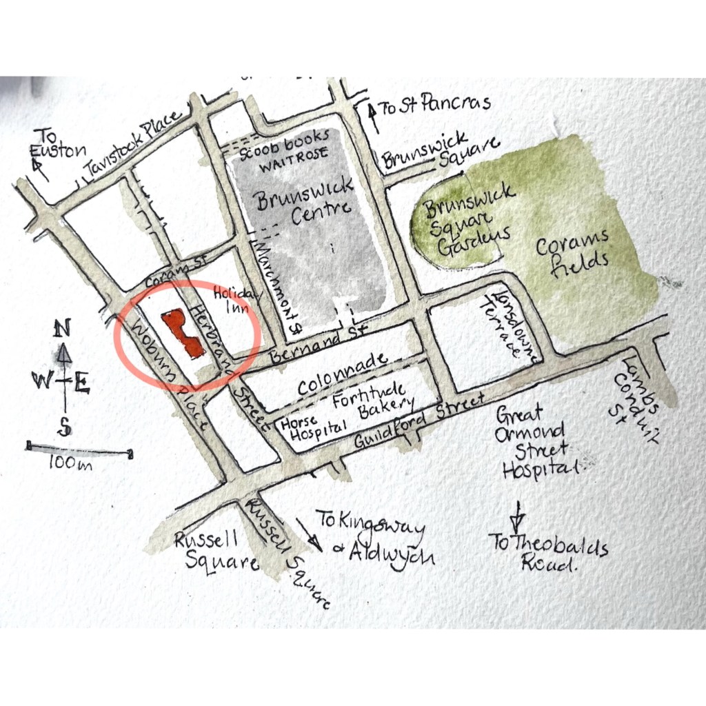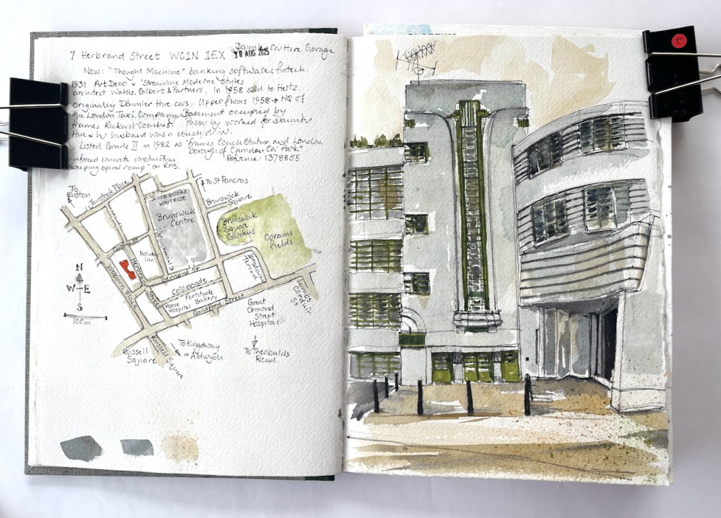 7 Herbrand Street WC1N 1EX, sketched 30 August 2025 in Sketchbook 16