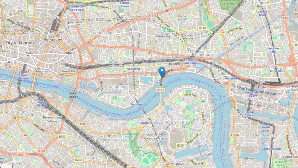Location of Rotherhithe Tunnel Shaft 3, map (c) OpenStreetMap contributors.