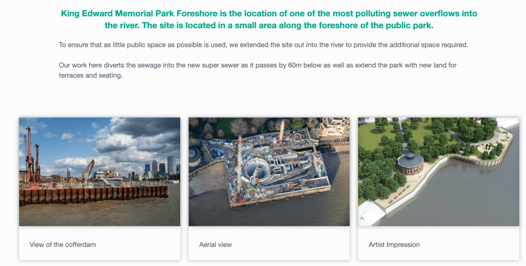 The fences in my drawing are the perimeter of a Thames Tideway tunnel construction site. The Thames Tideway Tunnel carries sewage from central London to Becton Sewage Treatment Works. It runs under the Thames. At various points there is a junction between this main sewer and a local sewerage system. The site at King Edward VII is one such junction.