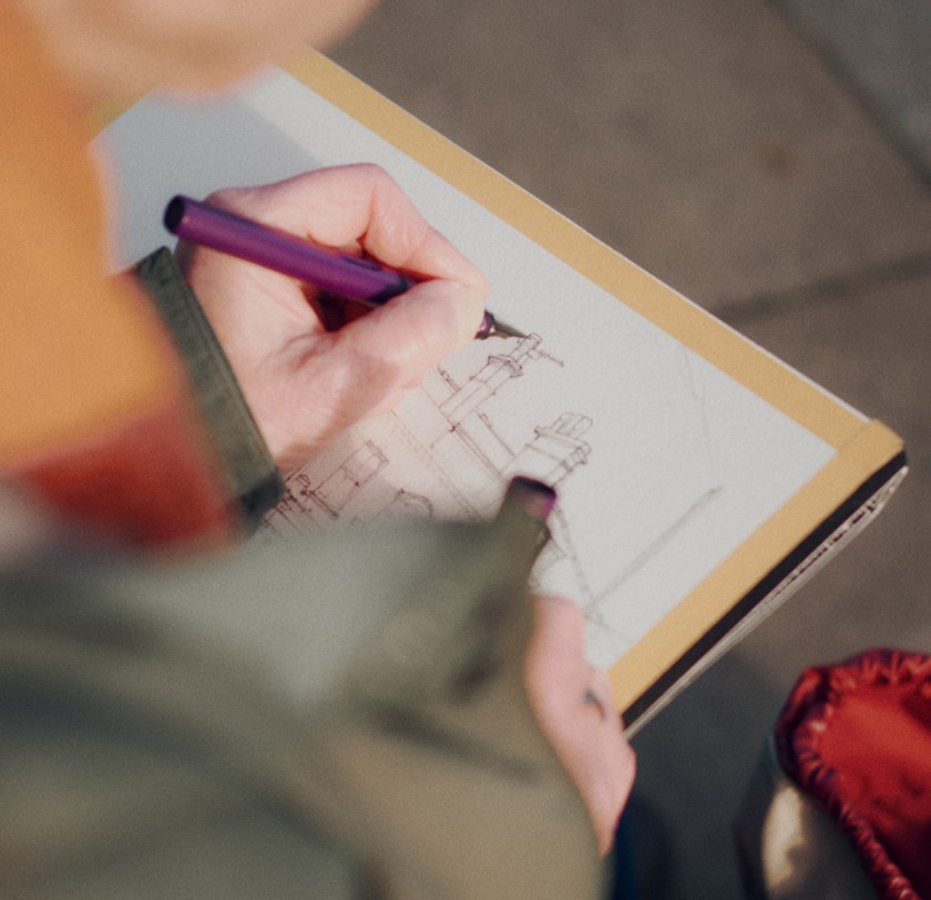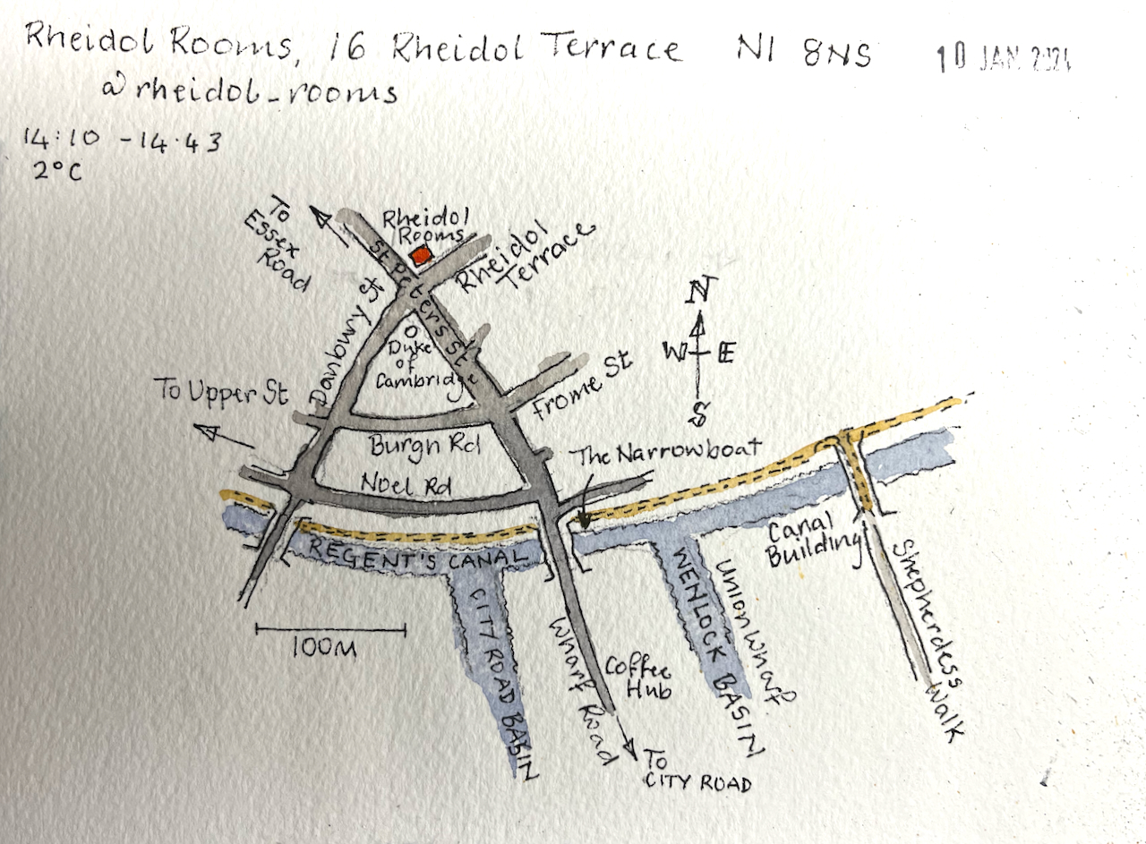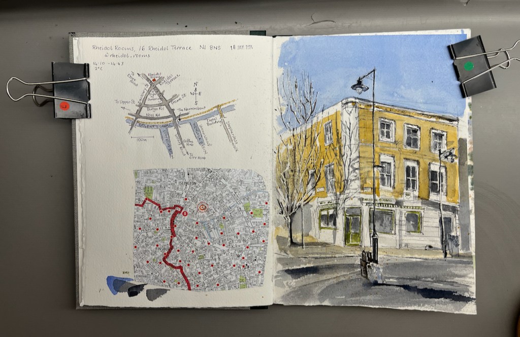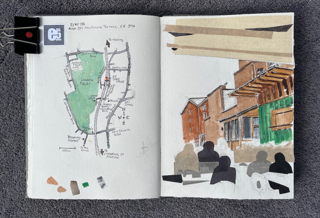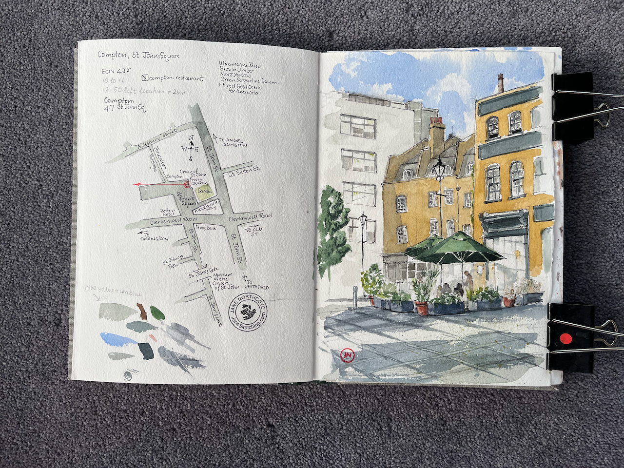 “The Leather Market” is one of a collection of co-working spaces managed by Workspace Group plc. We sketched and drank our coffee in the calm yard. Workers passed by and made encouraging comments.