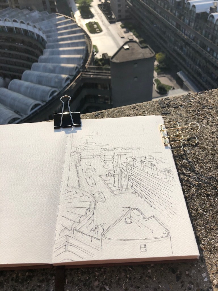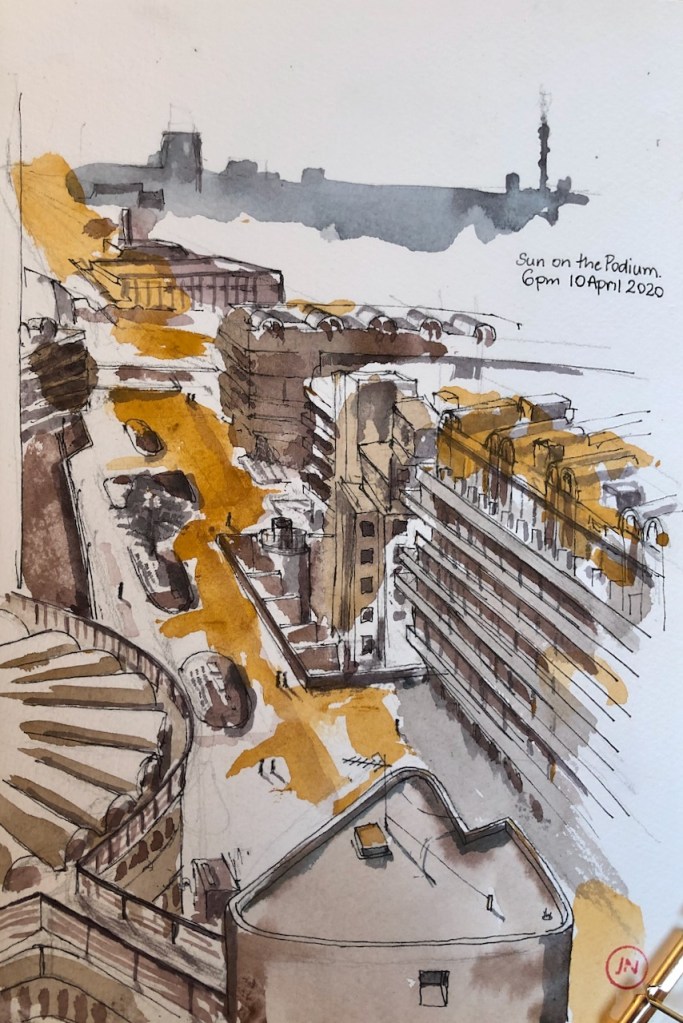 Last year, before the first lockdown, I drew this view in a sketchbook on location: