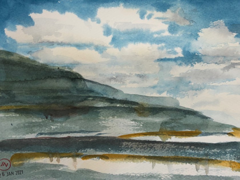 This was part of my experimentation with Jackson’s watercolour paper. Jacksons Art Supplies sent me a pack of 50 sheets, and asked for an honest review. 50 sheets is a lot of paper, and so I’ve felt able to experiment. I’ve enjoyed using it. Here is another version of the same scene.
